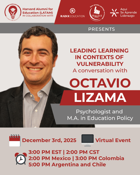Join us for a conversation with Octavio Lizama—Psychologist (Pontificia Universidad Católica de Chile) and M.A. in Education Policy (Columbia University)—who has spent 25 years working at the intersection of education and vulnerability. His leadership journey spans TECHO, Centro de Políticas Públicas UC, Enseña Chile and Teach For All, consulting and research with UNESCO and the World Bank, and school leadership at Colegio Ayelén and Betterland School, where he currently serves as Executive Director & Rector. He also sits on the boards of Fundación Portas and Fundación Presente and is a Fulbright and Becas Chile fellow, recipient of the LED 2024 Award.
