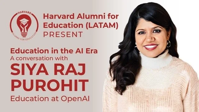 Last year, at Harvard Alumni for Education (HAED), Latin American Chapter, we had one of those rare moments when the future of education felt closer than ever. In a vibrant webinar with Siya Raj Purohit, Global Head of Education at OpenAI, we explored how AI is transforming learning. Alongside my co-directors Patricia Vázquez and Gustavo Rojas, and with an engaged audience joining from across Latin America and beyond, I found myself constantly surprised by the clarity, humanity, and urgency in Siya’s vision.